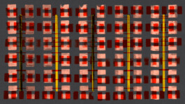 I reduced the aesthetics of the analog equipment to its essence: a number of basic shapes, of which I then made stamps. By stamping rhythmically, in varying combinations, layer upon layer, I have created abstract versions of Het Concreet.